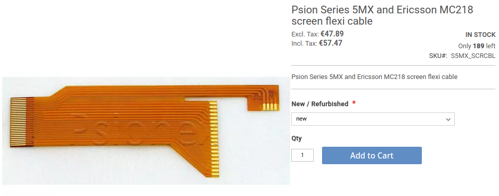 Это заставило меня задуматься о полной замене шлейфа. Psion это, на самом деле, дорого. Очень дорого! И сами КПК и аксессуары к ним стоят на Ebay очень внушительных денег, что уж говорить о деталях. Единственное место, где все еще можно найти шлейф - британский интернет-магазин Psionex. Шлейф можно найти здесь. Впрочем, при виде цены глаза норовят выпасть из орбит, а челюсть - отвалиться. Небольшой и довольно таки простой шлейф продают за... 60 евро! При том, что это не оригинал (вероятно заказные), учитывая слегка измененную схемотехнику и отсутствие "проклятых" отверстий.