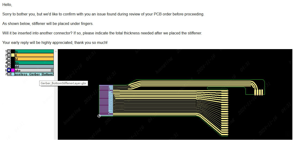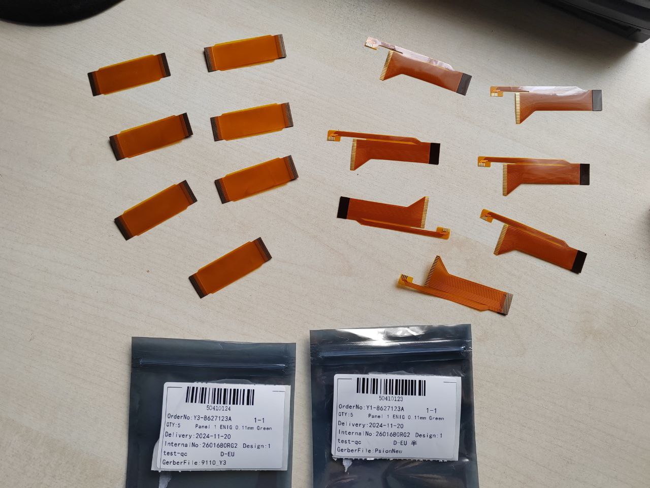 Обработка заказа прошла почти без огрехов. Китайцы лишь поинтересовались тем, какова должна быть общая толщина шлейфа и подкладки для стороны, вставляемой в разъем (довольно странно, ведь все уже было указано). Ну, общей толщины в ~0.3 мм оказалось достаточно. Для 9110 еще поинтересовались, почему я заказал двухслойный шлейф, имея при этом только 1 слой. Ответ на самом деле прост - 2$ почему-то действуют только на двухслойные шлейфы, за однослойный заказ взимается полная цена... странное решение. Поэтому и пришлось оставить второй слой пустым.