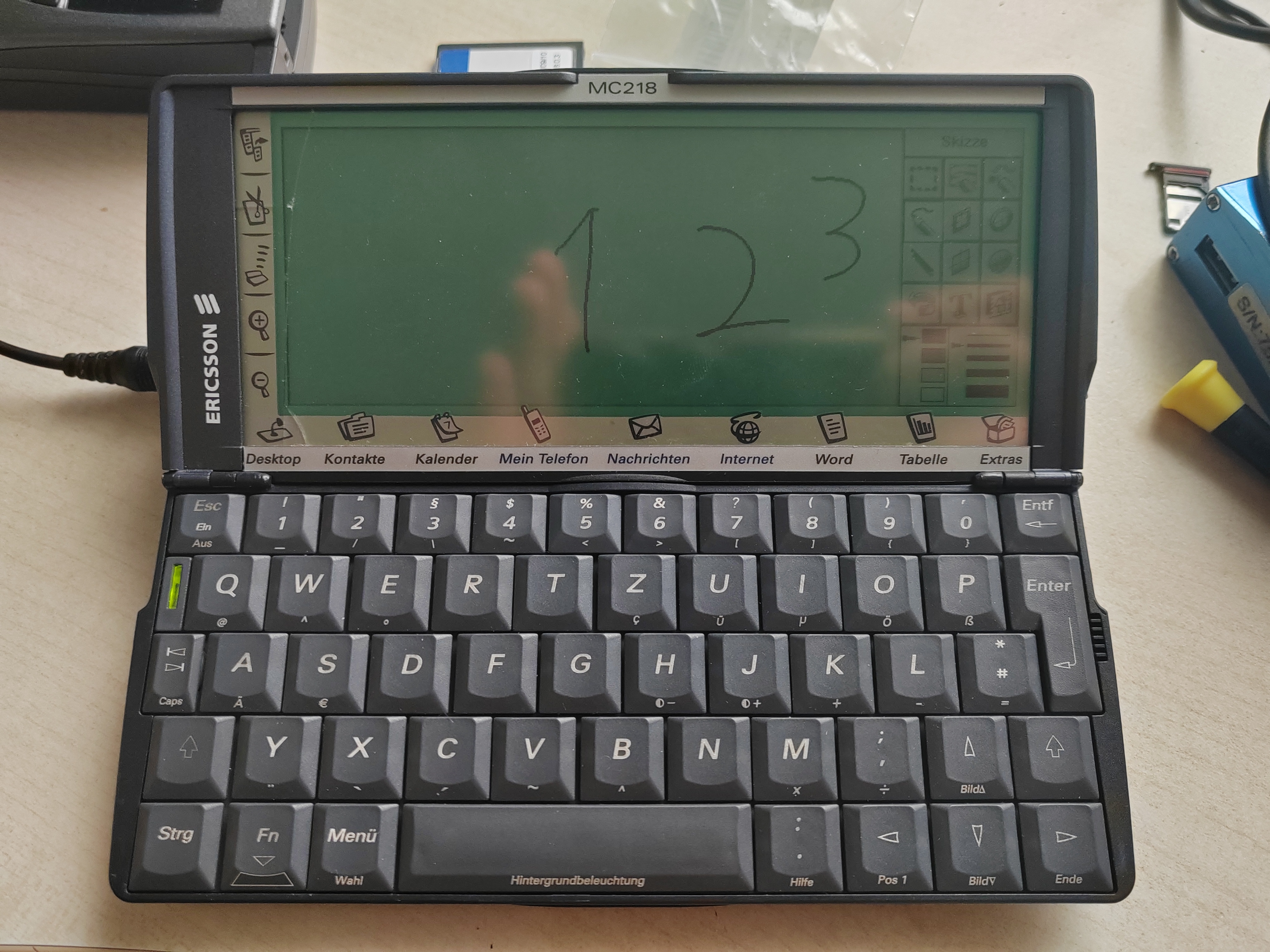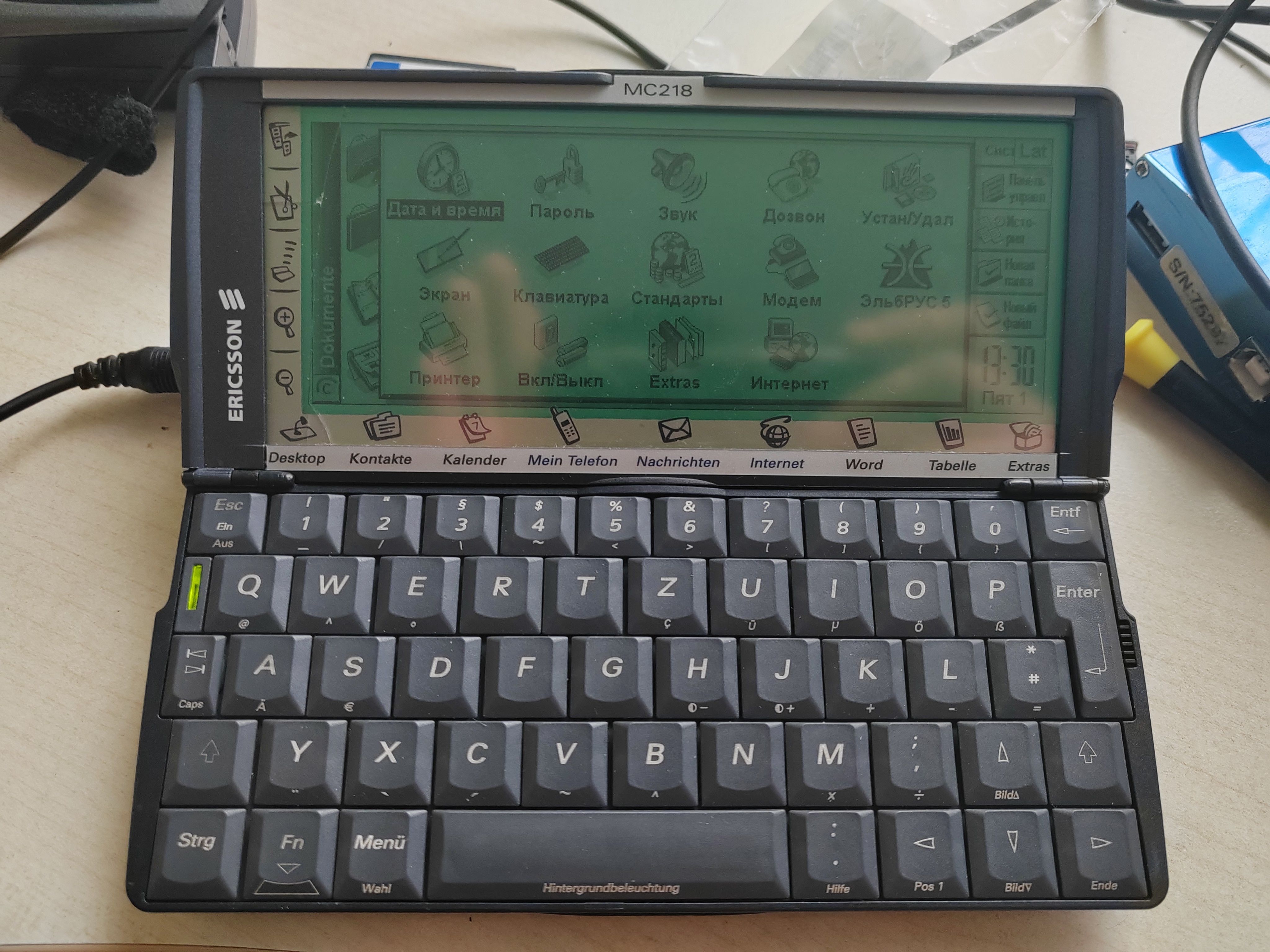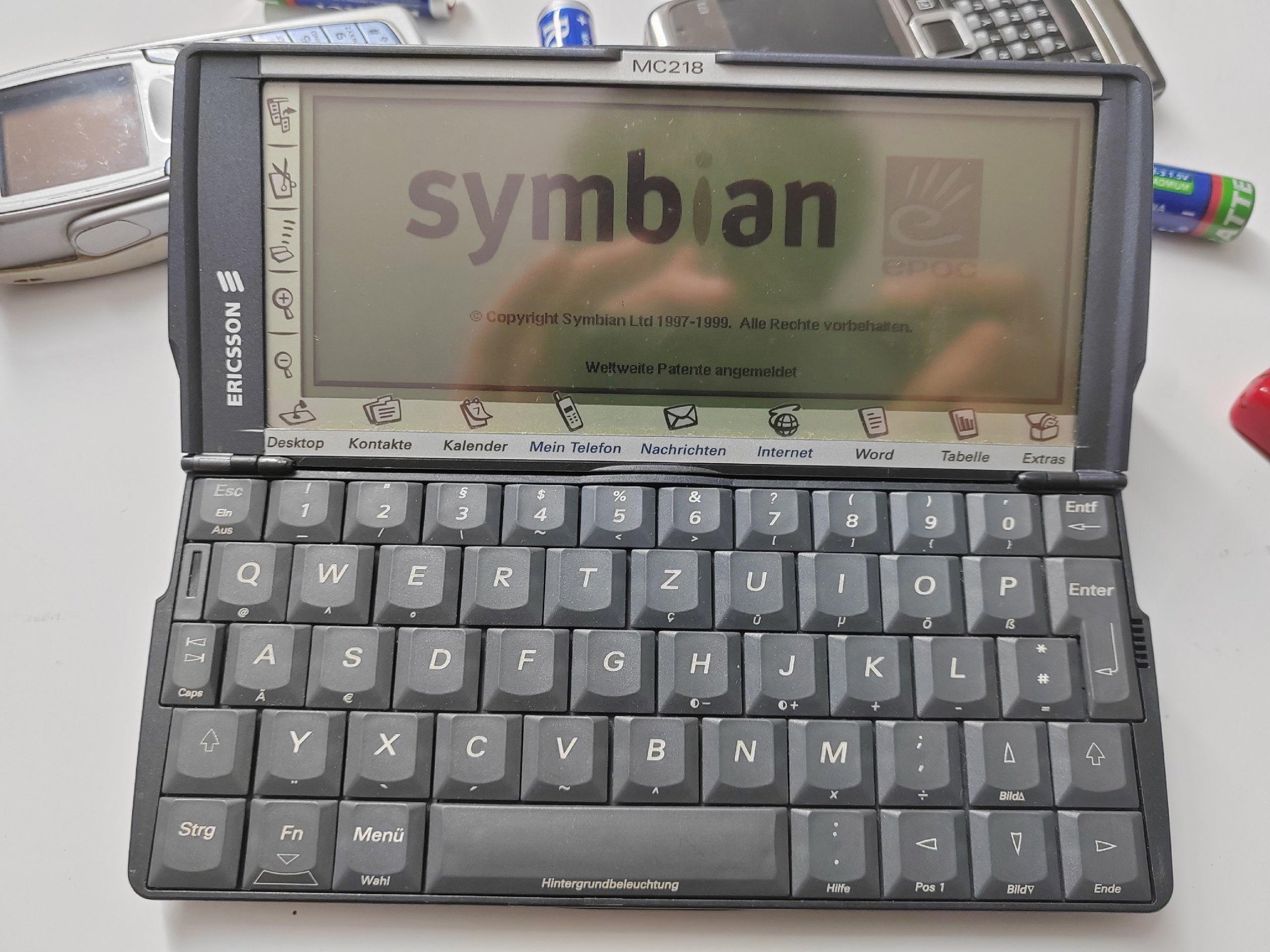 Знакомьтесь, это КПК Ericsson MC 218. Знатоки верно подметят, что это всего лишь перемаркированный Psion 5mx с кастомизированной прошивкой.