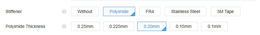 В заказе не забудьте включить Stiffener: Polyimide, толщина 0.20 мм.