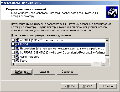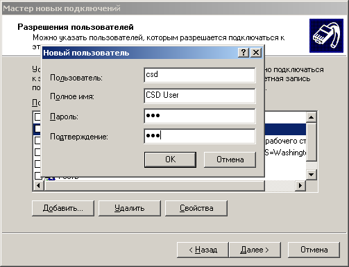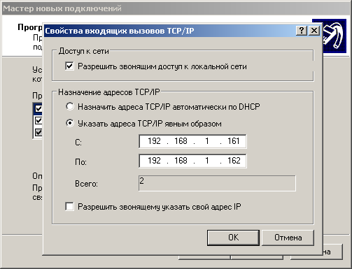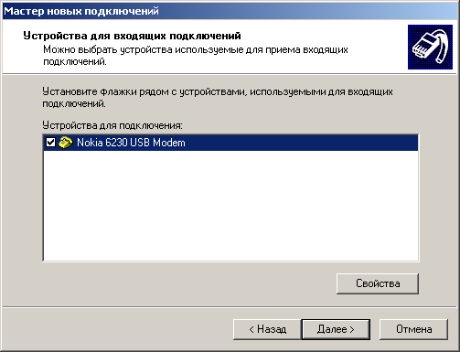 В целом, в качестве модема можно использовать даже Nokia 5110, проверено. Если вы все же собираетесь использовать телефон с поддержкой 3G, рекомендуется переключить его в режим принудительного 2G во избежание проблем с приемом CSD звонков. Теперь необходимо убедиться, что ваш оператор не ограничивает CSD звонки в своей сети. Наиболее быстрый способ проверить - создать профиль-"заглушку" в которой указать домашнюю WAP страницу, тип соединения (желательно ISDN, но если не работает можно проверить и аналоговый), любой IP адрес и ваш номер, который установлен в GSM модеме. Если телефон поддерживает HSCSD (14400 бит/с), он позволит выбрать и скорость. Можно попробовать выбрать 14400, но даже в то время далеко не все операторы поддерживали HSCSD, поэтому скорее всего звонок не удастся, тогда ставим 9600 (обычный CSD). Теперь пробуем зайти на домашнюю страницу. Телефон попробует совершить звонок с передачей данных (data call), если на стороне оператора нет никаких ограничений, телефон-модем должен зазвонить, при этом с пометкой, что это звонок с передачей данных. Если так и получилось - вам крупно повезло, можно продолжать настройку Dial-in сервиса. Ну а если звонок не удается, то, к сожалению, на стороне оператора что-то не так, придется выяснять этот вопрос с ним (как я и писал в начале заметки). 10. Настройка Dial-in сервиса: WindowsПрежде всего необходимо установить драйвер для вашего телефона.В моем случае это драйвер для телефонов Nokia. Теперь подключаем телефон. При установке драйверов среди функций телефона появится модем. Он то нам и понадобится. Открываем "Сетевые подключения" -> "Создание нового подключения". "Установить прямое подключение к другому компьютеру" -> "Принимать входящие подключения" -> Выбираем наш модем -> "Запретить виртуальные частные подключения". Теперь создаем пользователя, чьи данные (логин и пароль) будут использоваться для авторизации звонящего в системе. Я создам пользователя "csd" с паролем "123". Здесь необходимо вписать диапазон адресов для сети между компьютером и звонящими клиентами. У нас всего одна телефонная линия, поэтому достаточно диапазона из двух адресов (для сервера и звонящего ему телефона-клиента). Однако тут есть небольшой нюанс... По правильному, нужно указать IP адреса, никак не связанные с сетями, к которым подключен сервер. Например, серверу выдан адрес 192.168.1.30 из сети 192.168.1.0, откуда есть доступ в Интернет. Тогда для Dial-in сети можно использовать, например, 192.168.10.1 и 192.168.10.2, если бы не одно "но"... Между Dial-in сетью и сетью с Интернетом не будет связи! Если на одном сервере находится и Dial-in сервис и WAP-шлюз, то это не проблема, он будет работать с двумя сетями получая и передавая WAP данные с одной и HTTP с другой. Но если нужно дать телефону доступ в Интернет, придется прибегнуть к "грязному" трюку. DHCP сервер роутера первой сети выдает устройствам адреса из диапазона 192.168.1.10 - 192.168.1.150. Т.е. места от 151 до 254 свободны. Там и расположим нашу Dial-in сеть, как бы объединив их вместе. Да, делать так не очень хорошо, но тогда не потребуется настраивать межсетевой роутинг (на несерверной Windows это трудновато). Конкретно у себя я взял адреса 192.168.1.161 и 192.168.1.162, для сервера и клиента соответственно. Теперь у нас есть входящее подключение и компьютер готов обслуживать звонящих на модем. 11. Настройка Dial-in сервиса: LinuxНастройка Dial-in на Linux более гибкая, но при этом гораздо более сложная чем в
